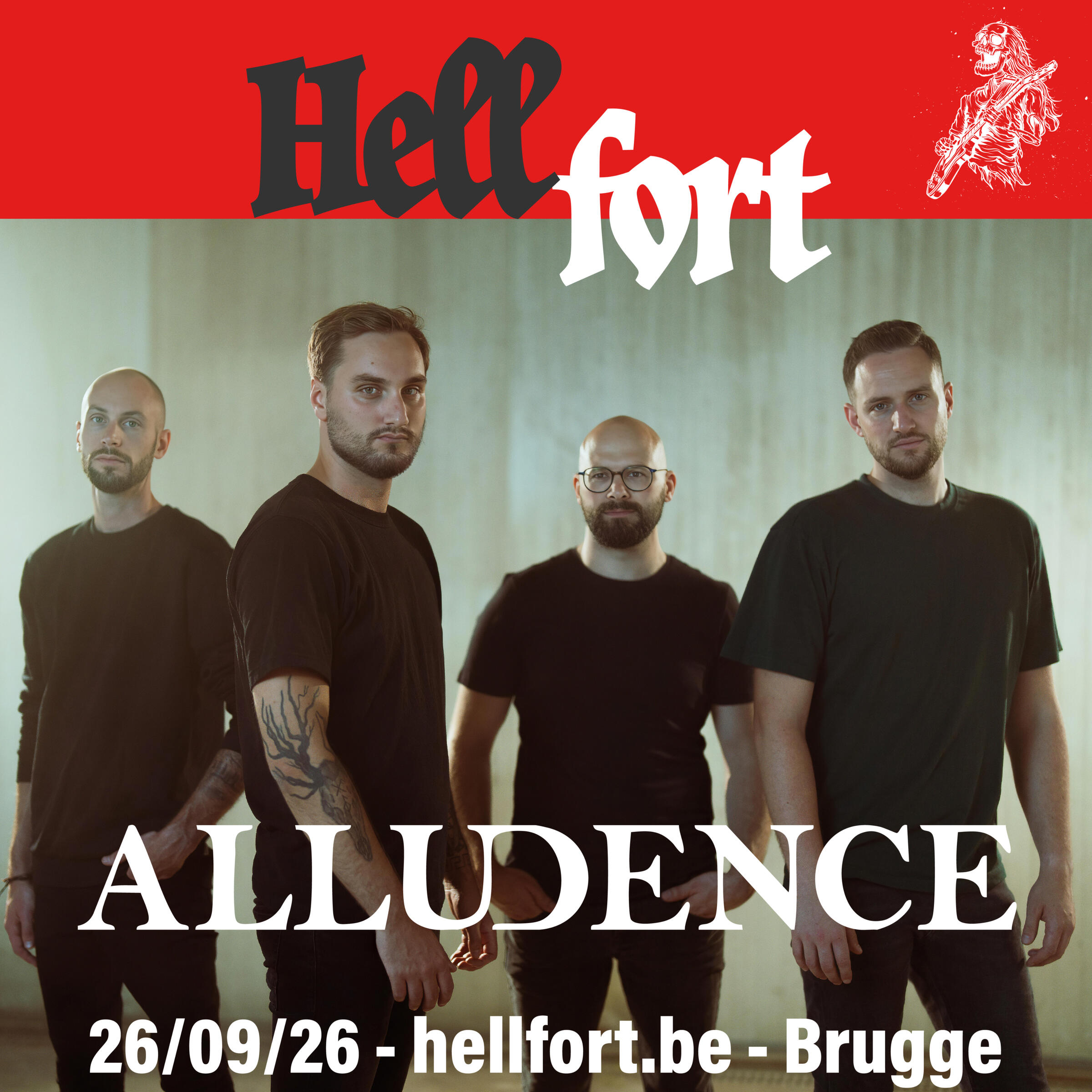 Yes! Alludence will take the stage of Hellfort.Alludence brings modern metalcore and with their single Oceans they prove to be on the right track. These four friends have a passion for bands like Architects, Bring me the Horizon and Northlane.They rightfully profile themselves as new kids on the block in Belgian music, although the members have spent many years in multiple musical projects.A warm welcome in the line-up of Hellfort, boys.