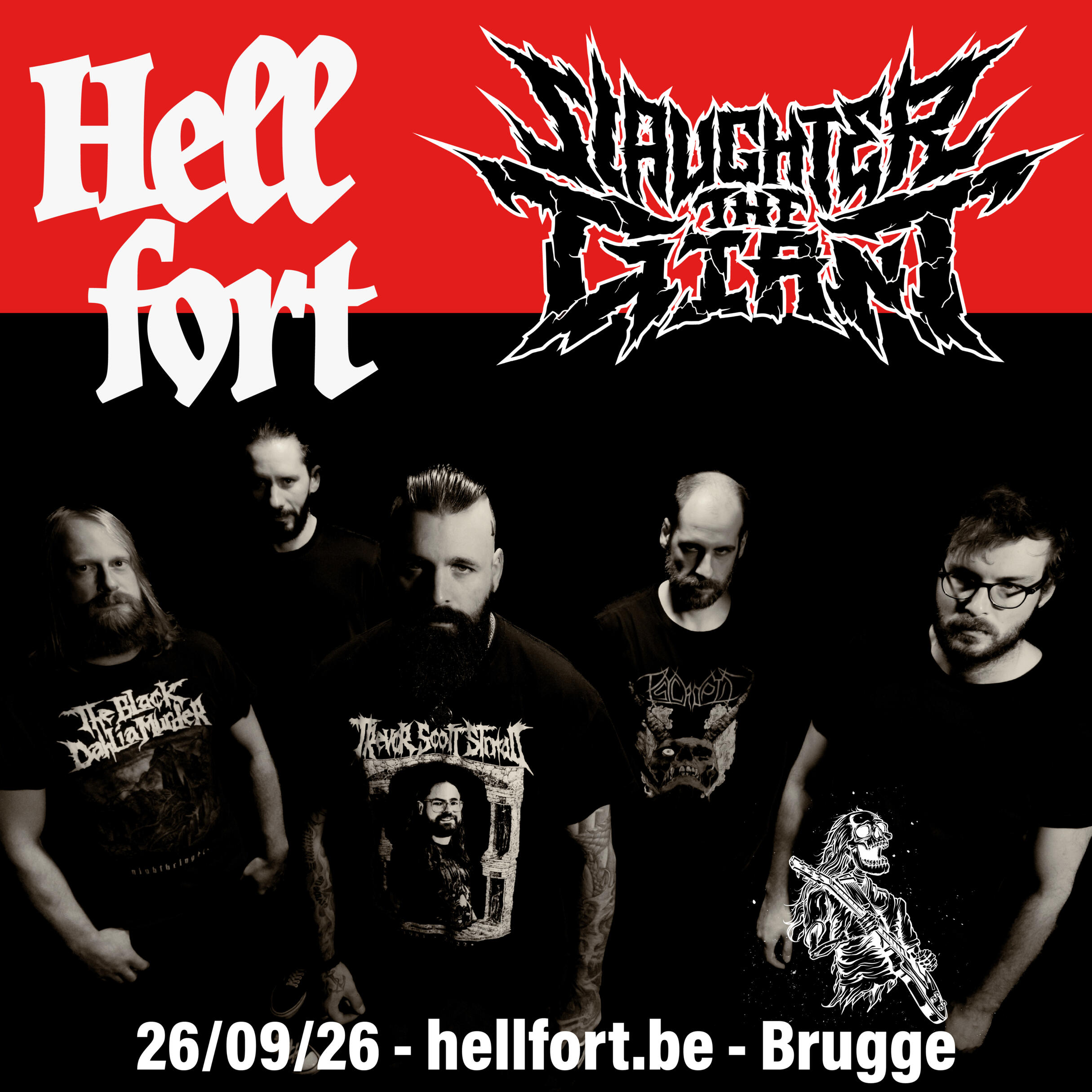 Het is een eerste editie, gedragen door een lokale vzw - de donkerste kunst - met één duidelijke ambitie:Brugge op de kaart zetten als metalstad — samen met bands, publiek en lokale en regionale partners.De naam Hellfort is een knipoog naar het Belfort: herkenbaar, Brugs, met een gezonde dosis zelfrelativering. We houden van Brugge.