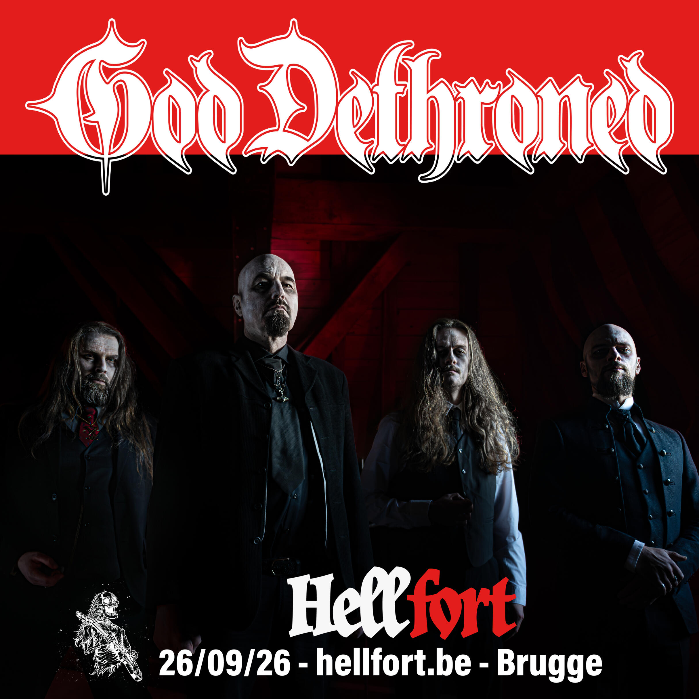 Where most bands play metal, God Dethroned also forged it.Active since 1990, these Dutch veterans have long outgrown the need to prove anything. Decades of touring, recording and surviving the natural selection of extreme metal have turned God Dethroned into craftsmen of the highest order. Every riff has purpose. Every blast beat knows exactly when to hit and when to pull back. Nothing is accidental, it's death metal played by people who understand tension, dynamics and restraint just as well as sheer violence. They know brutality hits harder when it’s controlled.With their recent material they prove to be anything but a legacy act. God Dethroned still sounds hungry, precise and focused. This is what happens when experience meets discipline and is delivered with the authority of true veterans. Please welcome God Dethroned like we do, with our utmost respect.