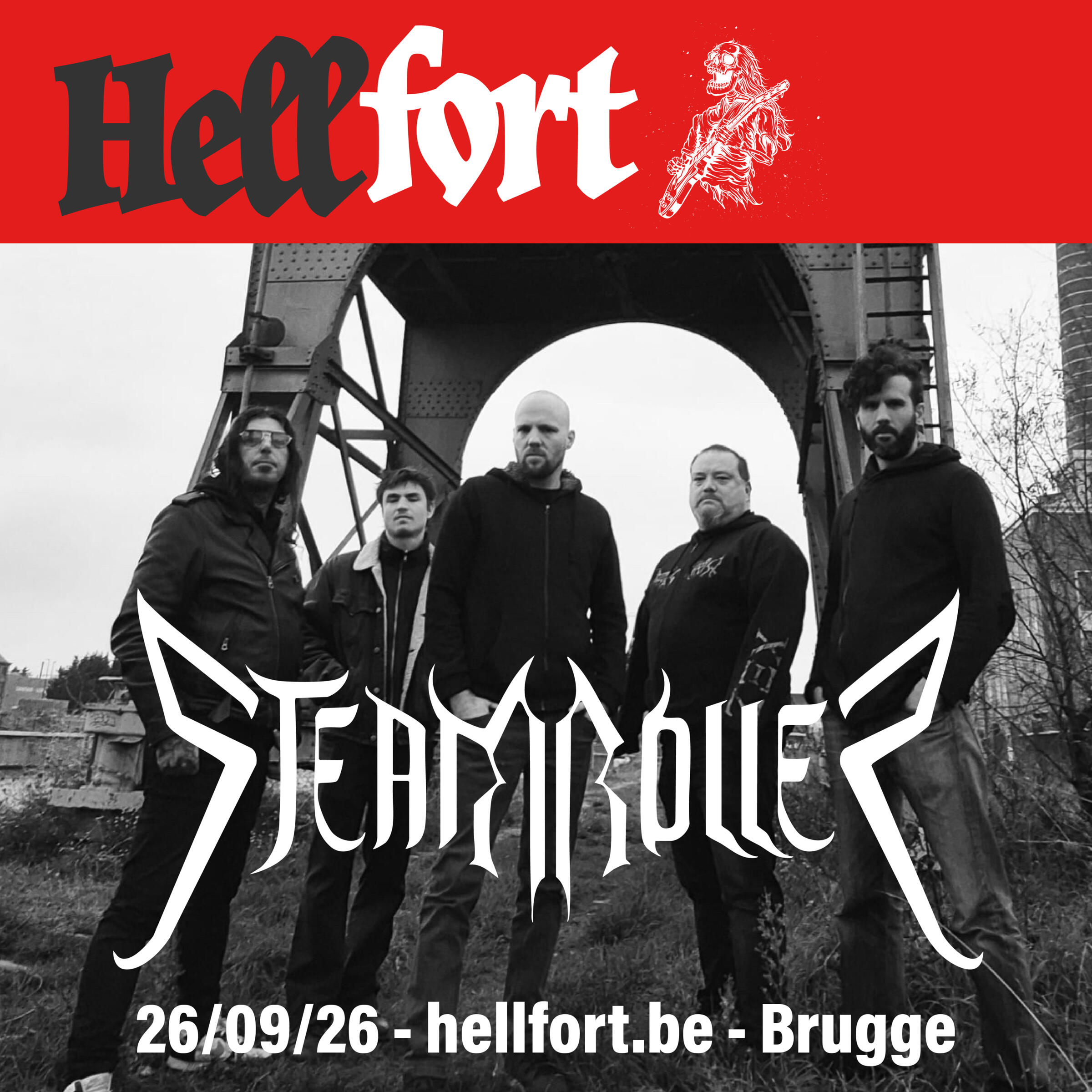 Het is een eerste editie, gedragen door een lokale vzw - de donkerste kunst - met één duidelijke ambitie:Brugge op de kaart zetten als metalstad — samen met bands, publiek en lokale en regionale partners.De naam Hellfort is een knipoog naar het Belfort: herkenbaar, Brugs, met een gezonde dosis zelfrelativering. We houden van Brugge.