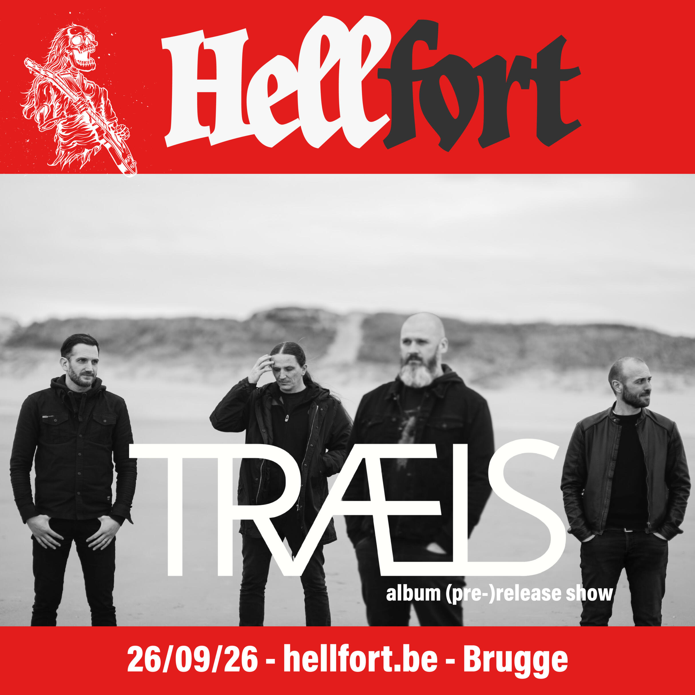 Yes, on paper Traels might be the lightest band on the Hellfort line-up, but do not mistake that for a breather. Their music builds up — with calmer passages carried by the drummer’s vocals that would feel right at home in progressive rock — but when the throttle gets twisted, things turn properly heavy.At Hellfort, Traels will present brand-new material alongside the tracks we already love. That alone makes this show one to circle in red. Expect a pre-release set, or — if the albums lands just in time — an actual album release show. Either way: hearing songs before most people do, is always the good kind of dangerous.We caught them live at JH Comma and were sold within minutes. Not just because of the sound — warm, layered, powerful — but because of the maturity they radiated on stage. They don't figure things out in front of an audience. They know exactly who they are and how hard they want to hit. A live presence that punches well above its weight and blends progressive metal, post-rock, and the occasional touch of djent.This one will leave marks on your Hellfort trail.